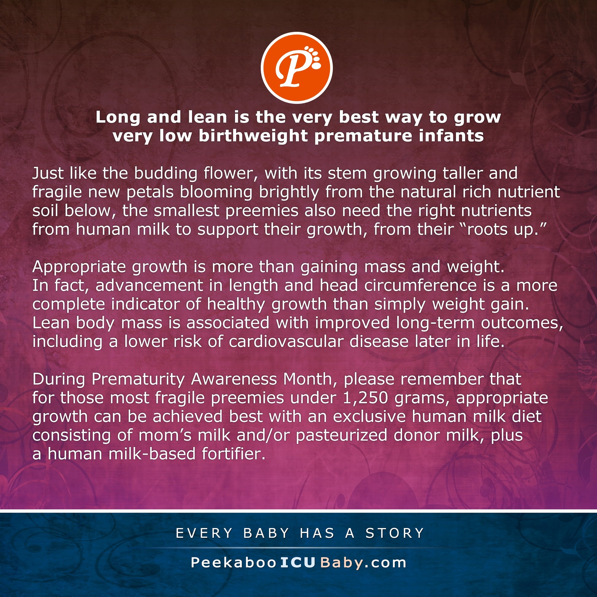 Just like the budding flower, with its stem growing taller and fragile new petals blooming brightly from the natural rich nutrient soil below, the smallest preemies also need the right nutrients from human milk to support their growth, from their “roots up.”